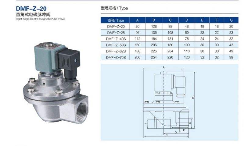 DMF-Z型電磁脈沖閥為直角式閥,其進出口之間夾角為90°,適合于氣包與除塵器噴吹管的安裝連接。氣流暢通,能提供符合要求的清灰氣脈沖。