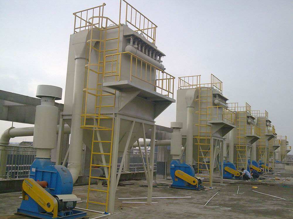 脈沖袋式除塵器大多采用上部抽袋結構,因而要求廠房要有一定高度。在生產中常常因廠房高度不夠而限制了除塵器的應用。當廠房高度比要求只矮1m左右時,可采用降低灰斗高度的方法,采用雙灰斗結構。但這種方法需要1臺螺旋輸送機和卸料器,運行費用略有增加。上能滿足抽袋空間時,可采用多級袋籠法,便此方法裝拆袋時工作量會加大。以上方法仍不能滿足要求時,可將屋頂打穿,將脈沖除塵器露天布置,根據煙氣條件,確定是否需要加溫,同時還要考慮電氣設備的防雨問題。