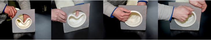 ?。?)以雙手緊握槽形墊彈簧圈(不需把除塵布袋拉起),雙手把彈簧環圈往里壓使之成“C”形。在保持彈簧環圈成“C”形的同時,放置溝槽形彈簧圈隆起的一邊到O近的花板孔邊。一手握著已裝嵌好的隆起的“C”形彈簧環圈的一邊,另一只手把隆起的“C”形固定在花板邊。