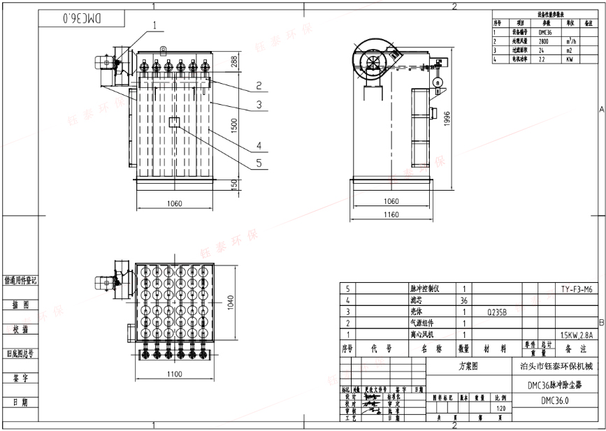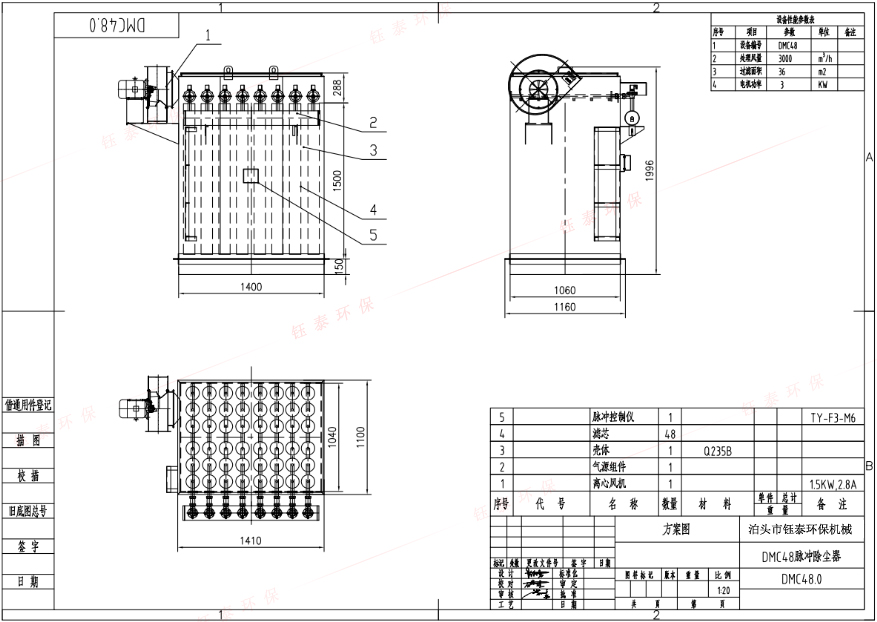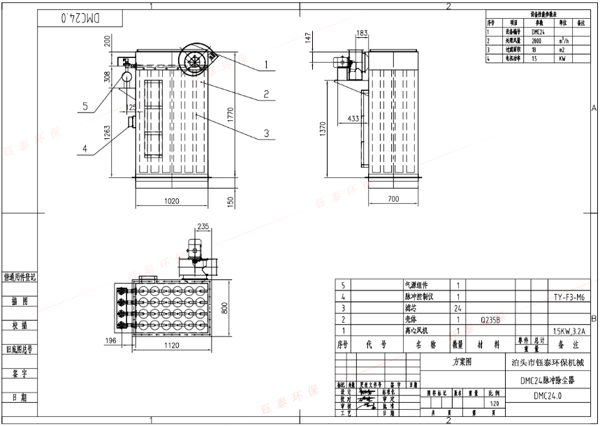 | 設(shè)備型號(hào) | 處理風(fēng)量(m³/h ) | 濾袋數(shù)量(只) | 過濾面積(㎡) | 電機(jī)功率(Kw) |